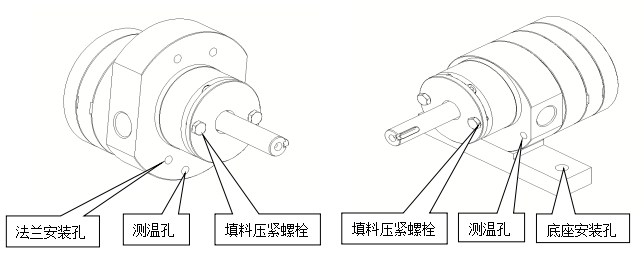 提供兩種泵頭的安裝形式,無論是法蘭安裝形式還是底座安裝形式,都設(shè)計(jì)有測(cè)溫孔,保證客戶對(duì)物料溫度的實(shí)時(shí)掌控。對(duì)稱布置的填料壓緊螺栓,方便客戶在不拆機(jī)的情況下壓緊填料。