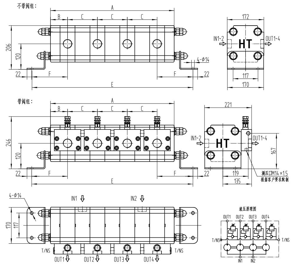 外形尺寸圖(以4流為例)